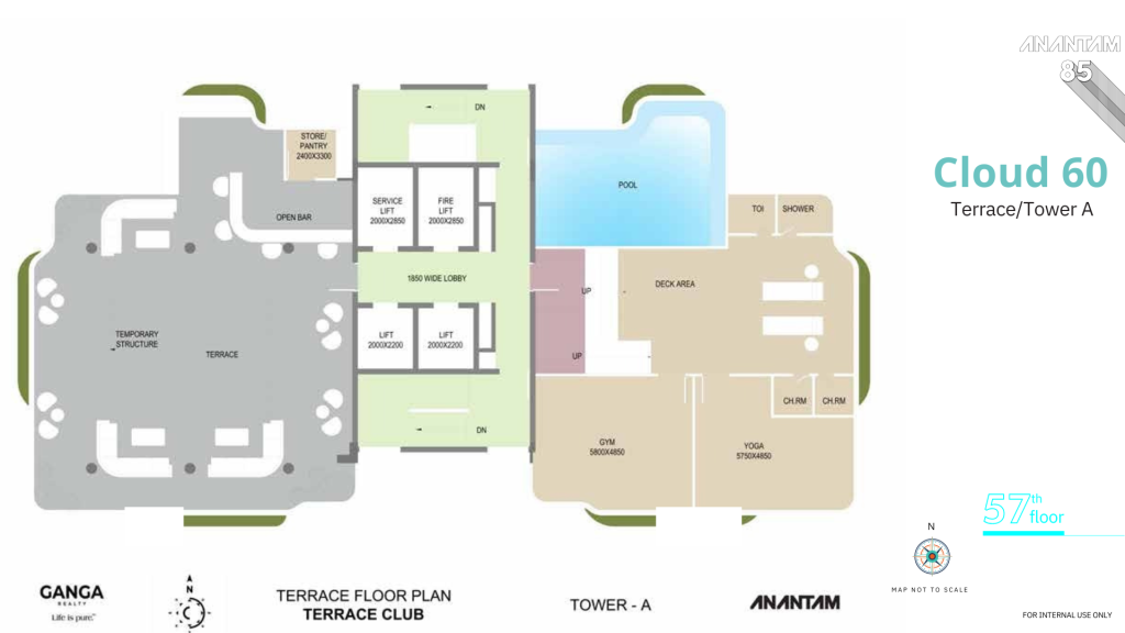 - On the 57th floor a clubhouse spanning 1 lakh Sqft