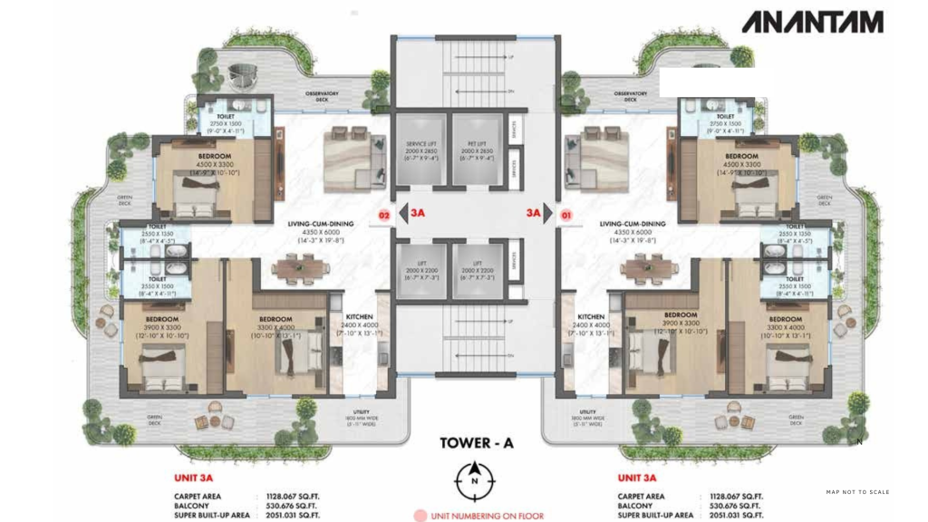 - 4 BHK + Utility + Servant: 3101 SQFT (includes 2 car parking)